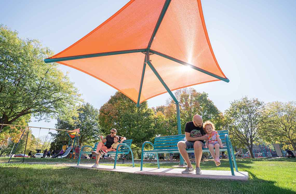 From a place to gather to protection from the elements, playground shade structures add value and offer a wide variety of options for design or size. From large shelters that can be used for parties and family gatherings to shade that protects children and equipment from the sun, adding one or more of these to your play environment is a way to increase use and offer your community a place to meet, have fun and keep moving!
